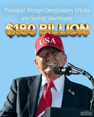 👍Presiden Trump telah menghemat orang Amerika lebih dari $ 180 miliar, atau $ 2.100 per keluarga beranggotakan empat orang, dengan menghentikan peraturan era Biden yang diusulkan.