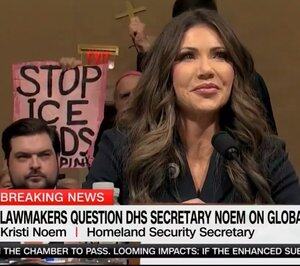 Para pengunjuk rasa dari 'CodePink' baru saja menyela sidang Kongres Kristi Noem, menuntut diakhirinya penggerebekan ICE.