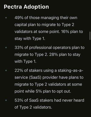 Mi chiedo se la mancanza di desiderio/urgenza di passare ai validatori di Tipo 2 sia dovuta a una mancanza di promozione dei benefici o alla mancanza di benefici (percepiti) nell'aggiornamento stesso.