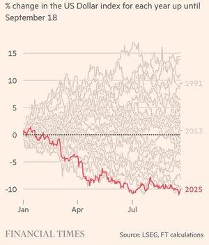 Adoro questa visualizzazione di @FT che analizza la svalutazione del USD dall'inizio dell'anno.