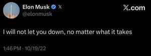 Elon Musk: "Non ti deluderò, qualunque cosa ci voglia"