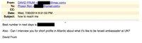 Frum lo ha fatto mentre scriveva anche un profilo dell'ambasciatore.