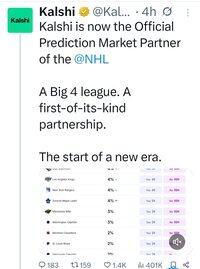 Secondo @Kalshi e @Polymarket ... entrambi sono "IL" Partner Ufficiale del Mercato delle Previsioni della NHL"