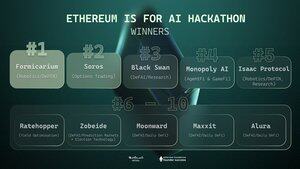 Annuncio dei vincitori dell'Hackathon Ethereum is for AI, organizzato in collaborazione con il programma Founder Success di @ethereumfndn.