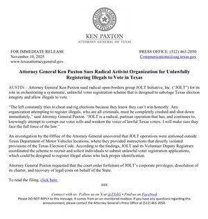 ULTIME NOTIZIE: Sto facendo causa a un'organizzazione radicale per aver registrato illegalmente degli immigrati per votare in Texas.