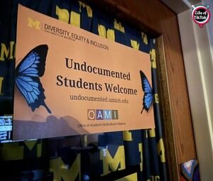 Inviato da un follower. Questo poster DEI all'Università del Michigan (@UMich) promuove l'arrivo di immigrati illegali nella loro istituzione finanziata dai contribuenti.