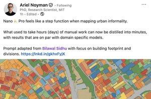 Davvero interessante. Ariel Noyman del MIT Media Lab ha adattato i miei prompt di Nano Banana Pro per mappare l'"informalità urbana" -- insediamenti complessi che sono notoriamente difficili da mappare manualmente.