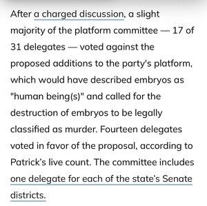 apparentemente il GOP del Texas ha votato solo di poco contro la considerazione della distruzione degli embrioni come omicidio, piuttosto spaventoso