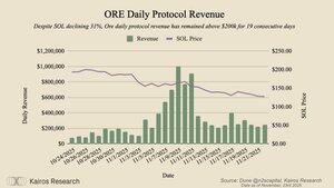 impressionante come il fatturato di $ORE sia rimasto sopra i $200k per 19 giorni consecutivi, nonostante il drawdown di ~30% di SOL in questo mese