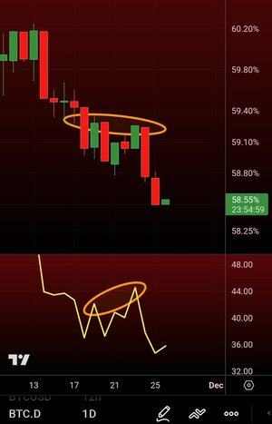 Ha negato qualsiasi opportunità di creare una divergenza rialzista poiché sia il prezzo che l'RSI hanno chiuso con minimi più bassi