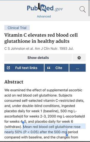 Se sei esposto a WIFi/nnEMFs, sostanze chimiche, inquinamento, muffa, alcol, o anche solo a un occasionalissimo Tylenol, ti svelo un segreto: solo 500 mg di vitamina C possono aumentare il tuo glutatione, il principale antiossidante del corpo, di quasi il 50%. ROI pazzesco. 🥰