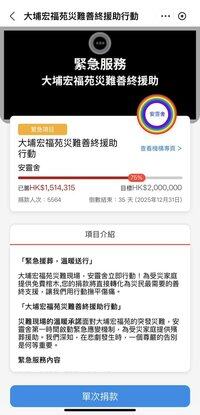 Per coloro che sono stati colpiti dall'incendio a Tai Po Hung Fuk Court, Alipay Hong Kong (AlipayHK) ha una pagina dedicata per le donazioni.