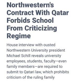 Il presidente uscente della Northwestern ha ammesso che il contratto della scuola con il Qatar vieta a studenti, docenti e persino alle loro famiglie di criticare il governo qatariota. Nessuna università americana che riceve fondi pubblici dovrebbe essere zittita da un regime straniero.