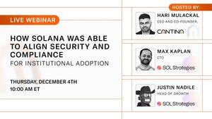 Il tuo prodotto Solana è davvero pronto per il capitale istituzionale? Analizzeremo questo nel nostro prossimo webinar, "Pronto per le Istituzioni su Solana: Sicurezza, Conformità, Esecuzione," con il CEO di Cantina @hrkrshnn e @SolStrategies’ @maxekaplan (CTO) e @JustinNadile (Responsabile della Crescita). 4 dicembre, 10:00 ET