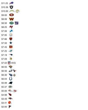 Il prezzo di un hot dog in ogni stadio della NFL: