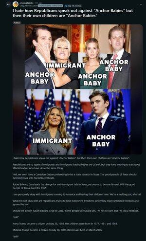 Un Redditor non sa cosa sia un "anchor baby".