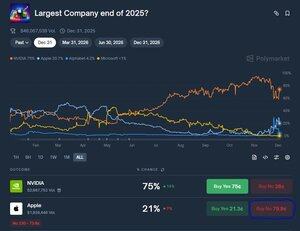 polymarket sta vendendo dollari a 0,79 centesimi non c'è alcuna possibilità che Apple sia la più grande azienda alla fine del mese