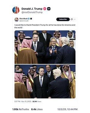 Il presidente Trump esprime nuovamente la sua gratitudine per Elon Musk: