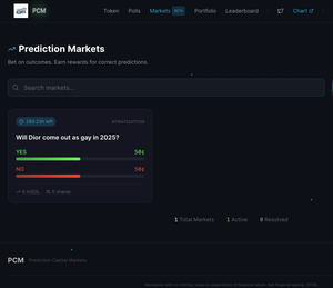 I mercati dei capitali delle previsioni sono la futura casa di miliardi di dollari, e la notorietà di questa moneta dovrebbe riflettere ciò. Quindi ho deciso di costruire il nostro personale mercato delle previsioni on chain. FASE DI TEST BETA!!! Flywheel, aggiornamenti dell'interfaccia utente, ecc. in arrivo.