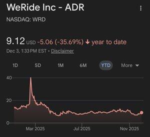 Ho pensato molto a WeRide $WRD. Sembra un vero giocatore di Robotaxi autonomo L4 che è appena uscito da una bella chiamata sugli utili e ha aggiornamenti positivi riguardo le operazioni a Dubai già. È ancora valutato a metà del suo valore di IPO. Beneficerà del vento favorevole della robotica. Grande potenziale.