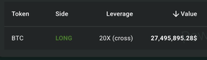 APPENA IN: QUALCUNO HA APPENA APERTO UN LONG SU #BITCOIN DA 30 MILIONI DI DOLLARI A 20x
