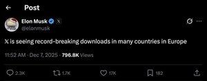 ULTIME NOTIZIE: Elon Musk afferma che X sta registrando "download da record" in Europa dopo che l'UE ha multato l'azienda di 140 milioni di dollari
