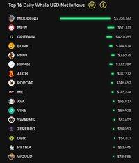 🚨 $MOODENG (@MooDengSOL) guida gli afflussi delle balene nelle ultime 24 ore secondo Sunflow