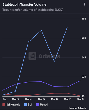 🚨 ORA: $SUI ha superato $MON nel volume di trasferimenti in stablecoin.