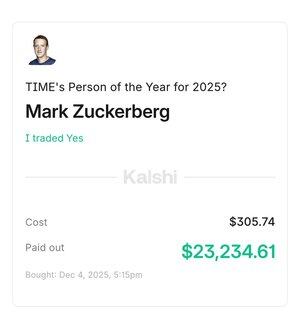 Il trader di Kalshi @LoganPredicts ha ottenuto un 80x su TIME Persona dell'Anno