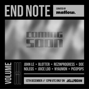 終わり注記 🫘🌸 第III巻 - エンドノート。 マローがキュレーションした最後のジェリービーン。 8点のアートワーク。420の供給。0.069ソル。 @notjohnlestudio、@joiceloo_art、@Blotter_art、@rez_inprogress、@bongdoe、@boywithnolegs、@nyaumon、@Picopops 12月12日 // 12pm UTC