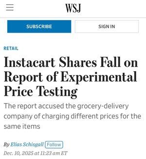 ウォール・ストリート・ジャーナルは、この調査がインスタカートの株価を下落させたと報じています。