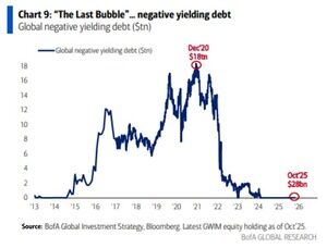 世界のマイナス利回り債券の価値は10月に280億ドルに減少し、11年ぶりの低水準に近づいた。