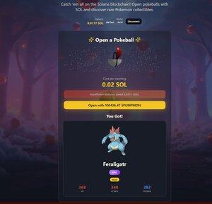$PUMPMONネイティブトークンを使用してモンスターボールを箱から入れることができるようになりました。 使い方: 1) 0.02 SOLに相当する$PUMPMONトークンの相場を取得します。 2) 十分な数のトークンがある場合、ユーザーはトランザクションを確認します。 3) ユーザーはポケモンを受け取ります。 デベロッパーはデベッティングしています。トレーナーが団結!