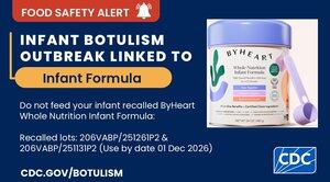 乳児ボツリヌス中毒症の発生:10の州で13人の乳児が病気になりました。死者は出なかった。ByHeartの乳児用調製粉乳がリコールされました。摂食不足、頭のコントロールの喪失、嚥下困難、表情の低下については、すぐに医師の診察を受けてください。症状が現れるまでに数週間かかる場合があります。
