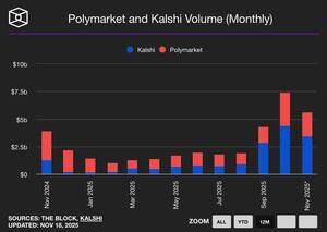ポリマーケット+カルシは2024年から2025年半ばまで、さらに努力を続けました... そしてボリュームがリッピングされました。 現在、月間70億ドルに達し、ウォレットの成長率は前年比で400%増加しています。 エアドロップや米国でのアクセスにより、これは暗号通貨界で最も急成長する分野の一つとなりました。