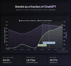 Gemini 3はGeminiのChatGPT訪問シェアを23%から30%に押し上げました!