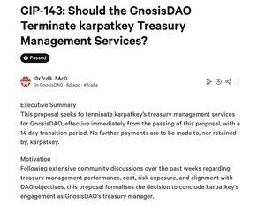 GIP-143はスナップショット✅を断送した ➡️ GnosisDAOはKarpatkey財務管理サービスを終了すべきでしょうか? 提案⬇️へのリンク