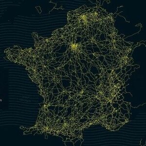 1903年以降のツール・ド・フランスの美しい地図が重なり合って展示されています