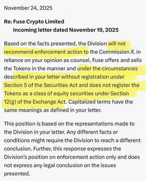 🚨新情報:@SECGovは、分散型エネルギーグリッドを構築するSolana拠点のDePinプロジェクト@fuseenergyに対して無対応の書簡を発表しました。規制当局は、Fuseのトークンオファーは投資契約には該当しないと述べています。なぜなら、その価値はネットワーク内での有効性に直接結びついており、投資家の利益期待ではないからです。