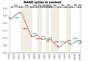 UBSは現在のNANDサイクルが2026年第3四半期に終了すると見ています。 メモリー株は通常、サイクル終了前の約2四半期で価格が決まります。 では、NAND関連株は2026年第1四半期にピークを迎えるのでしょうか?