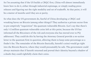 また、米国、中国、あるいは民間企業が最初にCRQCを開発し、なぜ脆弱なコインが盗まれていると思うのか、たとえ善意の国が先に手に入れても、なぜか説明します