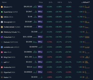 LunarCrush AltRankのトップコイン。今日は感謝祭の緑がたくさんあるね。