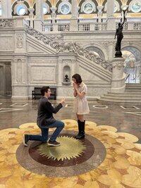 この二人の恋人は、選挙運動のボランティアとして政治の場で出会い、ふさわしくも彼らの提案はワシントンD.C.で最も美しいランドマークの一つである議会図書館で展開されました。