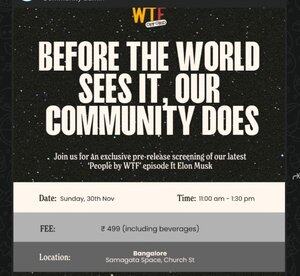 WTFはメンバー向けにニキル・カマスのイーロンマスクポッドキャストを500ルピーの料金で先行上映しています。