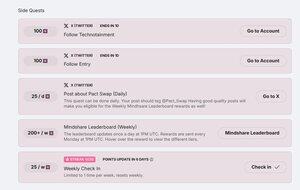 Pact Swapにはクエストハブがあり、これが一番簡単に周回できる方法の一つだと思います。彼らのクエストは本当に簡単で、Xクエスト数個、毎日のチェックインなどだけで済みます。