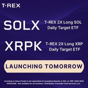 T-REX 2X $SOLと$XRP ETFが明日発売されます! 以下を通じて、SolanaやXRPの取引を2倍のレバレッジ付きエクスポージャーで拡大しましょう: T-REX 2倍ロングSOLデイリーターゲットETF、$SOLX T-REX 2倍ロングXRPデイリーターゲットETF、$XRPK ファンドの目論見書はこちらからご覧いただけます: