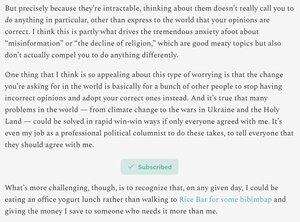 解決困難な問題には磁力的な談話の魅力があります。なぜなら、それらについて話し考え、気にかけることは、他人の悪い意見に対して怒る以外の行動を強制するわけではないからです。