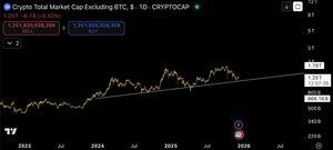 私がまだ一部のアルトコインに強気で、ビットコインに対して弱気ながらも爆発的に爆発すると予想している理由です。 アルトコインの総時価総額は、ユーフォリア以前のフェーズのようです。もちろん、これらは絶対的な確実ではありませんが、私に言わせれば!?無効化が起こるまでは試す価値はあります。