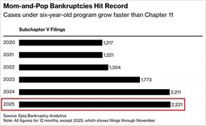 年初に至るまでに、過去最多の2,221社の小規模企業がサブチャプターVに基づき破産申請を行っています。
