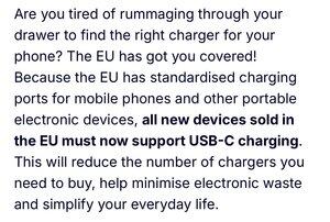 EUの批判者たちは「クッキー許可」という厄介な点(非常に悪い)に固執し、最も有害な義務付けを見落としています。それは暴力の脅迫ですべてのテック企業にUSB-Cの使用を強制しているのです。完全に狂気じみた反競争的な法律がイノベーションを抑え、自由市場を麻痺させています。